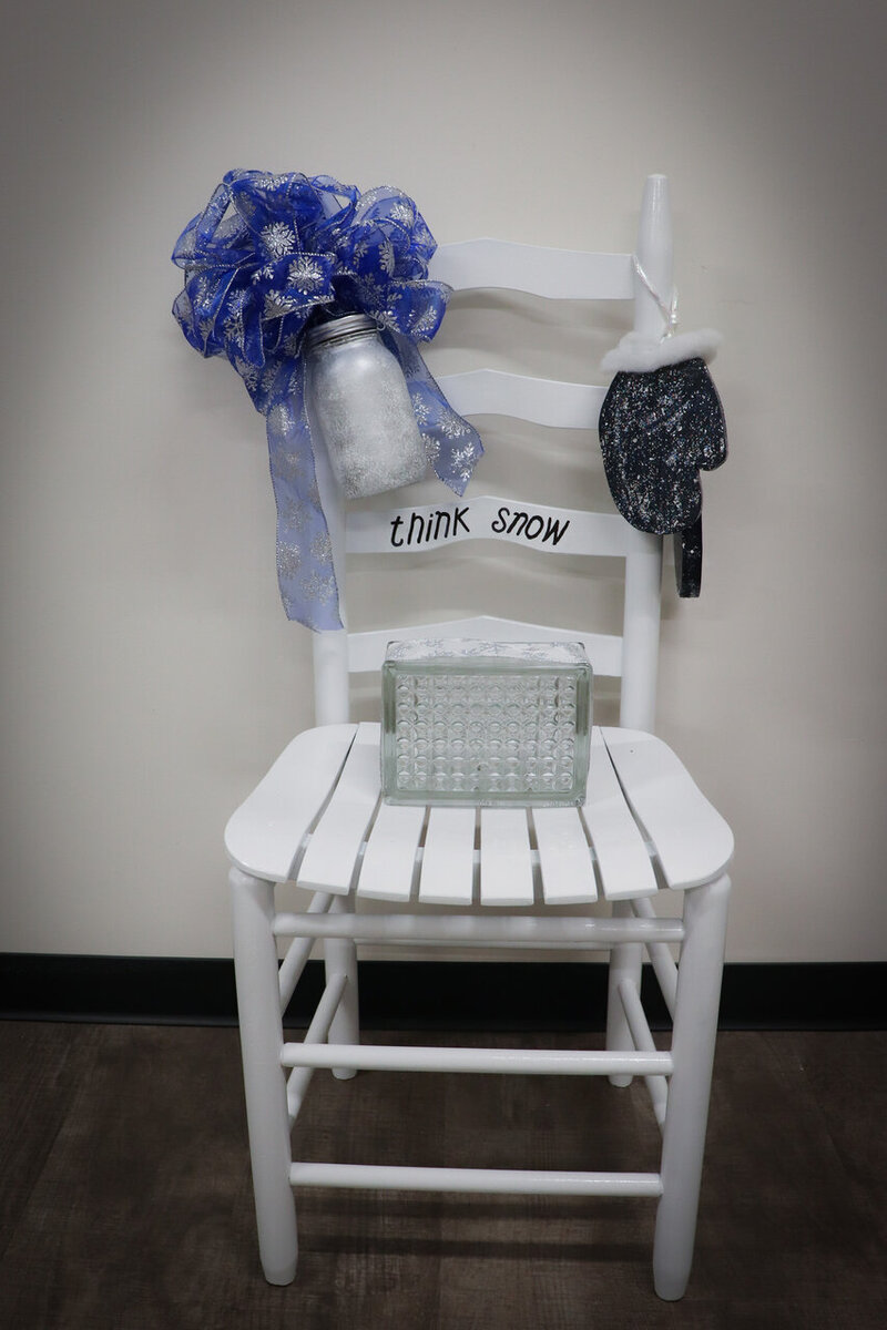 - Lot #75: Think Snow Chair With Solar Lighted Mason Jar