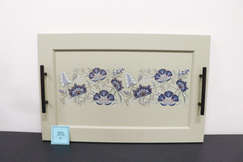 Imagine a stylish and functional tray born from creative ingenuity. Crafted from a repurposed cupboard door, this unique tray showcases a seamless blend of modernity and vintage charm. The dark, sleek hardware handles, carefully attached to the sides, provide a contemporary touch, adding a hint of sophistication to the design.