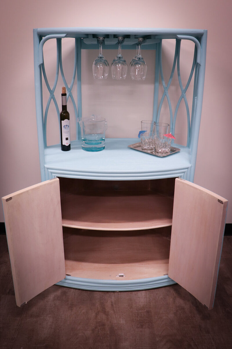 Crafted with meticulous attention to detail, the Blue Tiki Bar boasts a striking blue finish that emulates the coastal charm of a beachfront bar. Its design is inspired by the traditional tiki aesthetic, featuring bamboo-style details, a thatched roof, and plenty of shelving and counter space to serve your favorite tiki-inspired cocktails and refreshments.