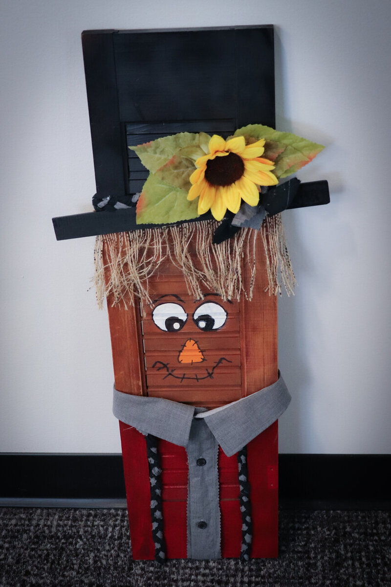 Introducing our Shutter Scarecrow – a whimsical and creative twist on the classic fall decoration, this unique scarecrow is not just a seasonal accent; it's a charming and resourceful embodiment of autumnal spirit.
