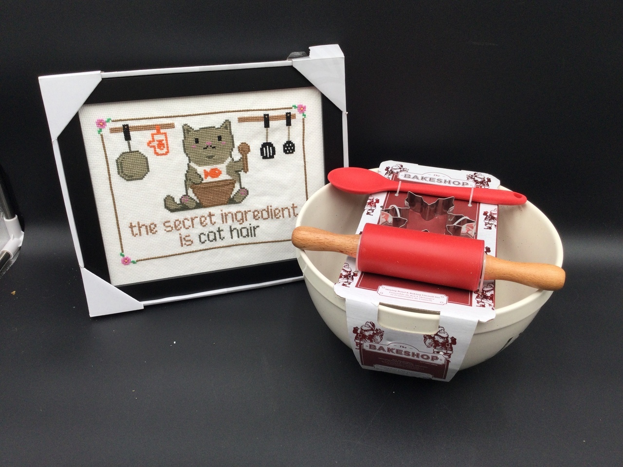 - "The Secret Ingredient is Cat Hair" (8" x 10") hand cross stitched wall art