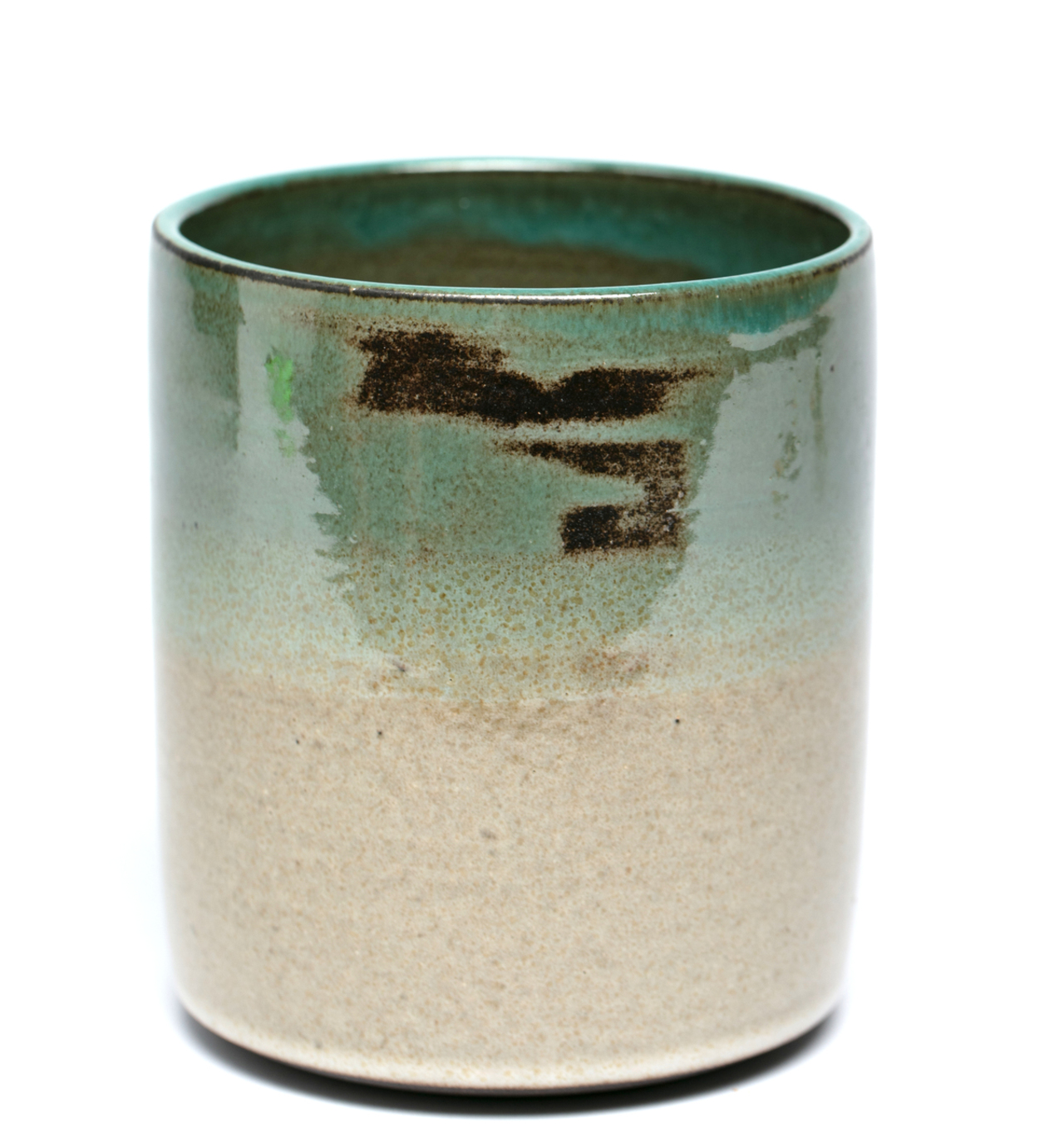 This ceramic piece could be used for kitchen utensils, flowers, paintbrushes, etc. Approximate size in inches 5.25 height x 4.5 wide
